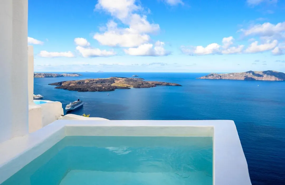 Dalla Villa Karpimo Scenery - Caldera Sunset View - Private Hot Tub - Firostefani puoi godere di una vista sul mare.